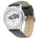 Uhr, Kinderuhr aus Edelstahluhr mit lila Lederarmband