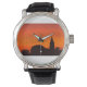 Uhr, Vintage Männeruhr mit schwarzem Lederarmband