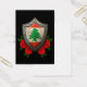 Dieses einzigartige Design zeigt die Flagge des Libanon auf einem komplexen Metallschild. Vier rote Rosen mit grünen Blätter bilden die Basis des Designs, das einen schönen Kontrast zum gealterten und abgenutzten Metall des Wappen schafft. Die Rüstung ist mit aufwändigen wirbelartigen Mustern und zwei fünf Sternen am oberen Ende des Designs dekoriert. Große Kratzer und metallische Farben verleihen dem Muster ein altes und abgenutztes Aussehen. Dieses patriotische mittelalterliche Muster ist eine großartige Möglichkeit, Ihren libanesischen Stolz zu zeigen.