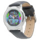 Kinder Edelstahluhr mit schwarzem Lederarmband