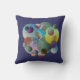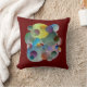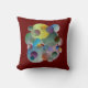 Das farbenfrohe Kissen voller Farbe, Kreise und Ringe mit tiefblauem Hintergrund und Rot auf der Rückseite kann in jeder gewünschten Farbe verändert werden.
