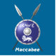 Eine Darstellung eines Maccabee's Schildes und zwei Speere. Der Schild wird von einem Löwen und Text mit dem Text "Israel" (Israel) im Paleo-Hebräischen Alphabet geschmückt. Es erscheint auch der englische Text "Maccabee". Die Maccabees waren jüdische Rebellen, die Juden aus dem Joch des Seleukiden Reiches befreiten. Chanukkah ist nicht nur ein Mittelwinterfest mit Kerzen und frittierten Köstlichkeiten, es feiert einen militärischen Sieg und sichert die Religionsfreiheit über das Seleukiden Reich. Außerdem war der Aufstand ein ziviler Krieg gegen die Juden, die G-d treu waren, und gegen diejenigen, die den Hellenismus der Seleukiden adoptiert hatten.