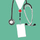 Medizinische Rückadressbeschriftung mit einer Stethoskop-Abbildung.