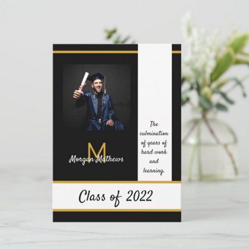 Fügen Sie Ihre Fotos hinzu und ändern Sie den Text in Schwarz-weißen und goldenen Ton auf dieser fett gedruckten grafischen Abschluss-Platte.
