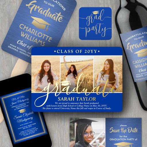 Royal Blue and Gold Elegant Graduation CelebrationDesignt von Allison S