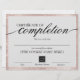 Moderne Blush Rose Gold Frame Certificate of Completion Awards.