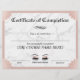 Moderne Rose Gold Marble Certificate of Completion Awards.