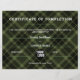 Manie und stilvolle Bescheinigung der Fertigstellung mit Tartan-Muster. Farben: schwarz, grün. Bitte vergewissern Sie sich, dass Sie mit einem weißen oder silberfarbenen Stift schreiben, wenn Sie von Hand schreiben.