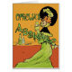 Eine etwas zaghaft aussehende Frau, die im Stil der Homosexuellen der 90er Jahre gekleidet ist, hält ein Glas grünen Absinthe.