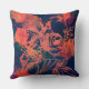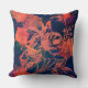 Beauty and the Grunge. Textured rusty red and orange paint daubed accent cushions decorated with rose illustration.