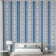 Diseño en color blanco con líneas verticales en tonos azules y brocado abstracto.