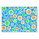 Ein ansprechendes handgezeichnetes abstraktes Design, bestehend aus runden Formen in Weiß, Orange, Grün und Blau.