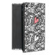 Fun iPad Mini Folio Gehäuse, fertig in einem abstrakten Doodle-Art Farbbild, mit einem rosa Herz. Personalisieren Sie den rosa Namen, für sich selbst oder als eine tolle Geschenkidee für sie.