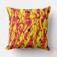 Kopfkissen mit chaotischen, farbigen Linien und Sternen, rot und gelb