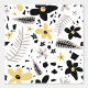 Ein schönes, schwarz, gelb und grau nahtloses Blumenmuster. Ideal für Geschenke, Wohngestaltung, Kinderzimmer und Dekoration im Party. Ein ideales Design für alle, die Lieben handgezeichnete abstrakte Blume, schwarz, grau und gelb und botanisch inspirierte Designs.