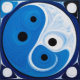 Eine moderne Darstellung von Yin Yang in Blau und Weiß vor einem Hintergrund beruhigender kreisförmiger geometrischer Formen, die das Gleichgewicht der gegensätzlichen Energien im modernen Leben symbolisiert.