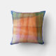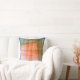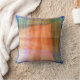 Das originale abstrakte Design auf diesem 16" Kissen wurde aus einem Originalfoto von ZoeSPEAK gemacht. Es bietet einen Blick über ein Fenster auf eine Landschaft. Die Grenze ist in Blau gehalten, das Interieur in Orange- und Grüntönen mit hellgelben und rosa Akzenten. Es gibt lineare Bänder mit Löchern, die in ihnen gestochen wurden, um das Design zu kreuzen.