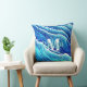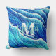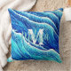 Abstrakte Blaue Ozeanwellen Mit Monogramm Kissen