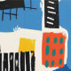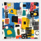 Dieses Kunstwerk zeichnet sich durch eine dynamische und eklektische Komposition aus abstrakten Formen, Mustern und Texturen aus, die in einer Collage-ähnlichen Anordnung zusammengefügt sind. Das Design besteht aus fetten Farben wie Blau, Gelb, Rot und Schwarz, wobei jedes Element in Größe und Form variiert. Handgezeichnet Linien, Gitter und Pinselstriche verleihen dem Stück ein spielerisches und spontanes Gefühl, während die unregelmäßige Anordnung der Formen ein Gefühl von Bewegung und Energie schafft. Die Kombination geometrischer Formen und Freizeichen verleiht dem Kunstwerk ein modernes, künstlerisches Ambiente.