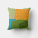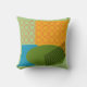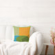Dieses Kissen hat ein modernes Design von einem Rechteck, einem Oval und einem Parallelogramm mit leeren Kreisen und parallelen Linien, die sich überlagern. Woll verschiedene Farben? Nachricht.