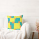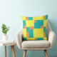 Ein ursprünglich abstraktes geometrisches Muster in Zitronengelb, Türkis und Orange.