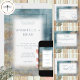 Dieses Design zeichnet sich durch einen abstrakten, blauen und goldfarbenen Strand- und Wasserhintergrund aus, mit Text in einem weichen Spray-Textkasten. Das Hotel ist modern und einzigartig und eignet sich ideal für eine Hochzeit am Strand oder am Wasser. Es wurde von Simply Farmhouse Press entworfen und ist Teil der Modern Beach Abstrakt Wedding Suite.