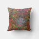 Zuhause oder Schlafzimmer mit modernen abstrakten Kissen, die farbenfrohe Wirbel aus Blau, Gelb, Rot, Grün und mehr bieten.