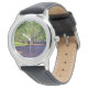 Uhr, Vintage Männeruhr mit schwarzem Lederarmband