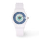 Ein rustikales, abstraktes Design basierend auf dem traditionellen griechischen "Auge" Glücksbringer. Die Single-Stunde '3' ist einfach in ihrem Design, wirkt ruhig und ungezwungen und erinnert an eine sanfte Meereswelle. Die saubere Palette von Blau, Weiß und Wasser erinnert an die majestätischen Strände des Mittelmeers. Diese spezielle Uhr mit ihren weißen Silikongurt-Sets aus dem Design schön und ist perfekt, um den ganzen Sommer lang zu tragen. Uhren gibt es in vielen verschiedenen Stilen, Gurtmaterialien und Gesicht-/Wählfarben; Sie werden sicher einen finden, den Sie in Ihrer Liebe finden.