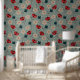 Handgezeichnet Blume und Blätter in Rot-, aquamarin-Grün- und Brauntönen schaffen ein dynamisches, strukturiertes Set vor einem grüngrauen Hintergrund. Die kühnen Farben dieses Tapeten und die Texturen heben sich ab und verleihen dem Bild Tiefe und Wärme. Das Blumendesign hat einen böhmischen und Vintagen Stil, der ein Gleichgewicht zwischen Eleganz und einer natürlichen, handgefertigten Ästhetik schafft.