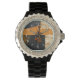 Uhr, Vintage Männeruhr mit schwarzem Lederarmband