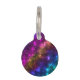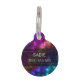 Abstrakter und bunter Weltraum Kosmos / Weltraum Nebel Hintergrund mit weißen Punkten als Sterne. Das Design ist in Blau, Rosa, Grün und Orange gehalten. Auf der Rückseite befindet sich ein personalisierbarer Textbereich für den Namen des Tieres und für eine Telefonnummer.