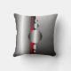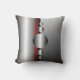 Throw-Kissen mit abstraktem Entwurf des ursprünglichen, coolen und modernen Metallblickes der Kreise und der Streifen in silbrig-grauem, in Schwarzem und Rot.