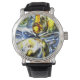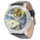 Uhr, Vintage Männeruhr mit schwarzem Lederarmband