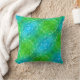 Dieses in Aqua-Blau und Kalkgrün gehaltene schicke Boho-Kissen mit seinen lebhaften Farben und dem feinen Muster gewellter Linien runden das böhmische Ambiente ab. Jede Seite hat ein anderes Design.