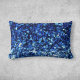 Dieses Lumbalkissen zeichnet sich durch ein abstraktes Farbenstrichmuster in verschiedenen Blautönen aus.