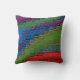 Dieses Kopfkissen verleiht der Dekoration mit lila, grünen, blauen, roten, türkisfarbenen und goldenen Regenbogenfarben eine fröhliche Note. Die Farben verlaufen über die Oberfläche in einem abstrakten Muster. Beide Seiten haben das gleiche Bild.