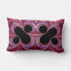 Dieses Lumbalkissen zeigt zwei Spiegelbilder einer wunderschönen Fraktal-Kunst mit schwarzem Prozent-Zeichen auf abstraktem Rot, Rosa und lila Hintergrund.