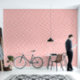 NewParkLane - Elegante Retro-Tapete mit fett, mit einem modernen, komplizierten geometrischen Muster von Quadraten in Pfirsich / Korallen.