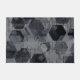 Abstraktes geometrisches Muster, schwarz und grau Hintergrund. Schwarze, graue geometrische Formen, Honigwaben auf einem hellgrauen, gestreiften Hintergrund.