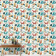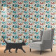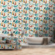 Geometrische Katzen in einer angenehmen Palette von türkisfarbenen und goldenen Stäbchen auf weißem Hintergrund.