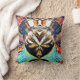 Dieses Kissen ist mit einem abstrakten, brillant farbenen Bild in aquamarinen, roten, lila, goldenen und schwarzen Tönen gestaltet.