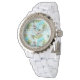 Eine wunderbare Damenuhr mit weißem Armband und grün-weiß-kariertem Ziffernblatt. Trägt sich ganz fabelhaft. Exzellenter Druck, sehr klare Farben. Schönes Design.