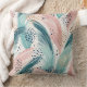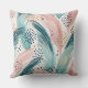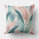 Ein ausdrucksstarkes, abstraktes Kissen, das in Rosa-, aquamarin- und Dunkelblau-Farbtönen breite Pinselstriche aufweist und organisch über einen sanft gesprenkelten Hintergrund fließt. Dieses Design mit Haufen dunkelblauer und metallischer Goldpunkte kombiniert kühne Bewegungen mit raffinierter Textur und schafft so eine dynamische und künstlerische Ästhetik. Perfekt für moderne Kreative, Kunstliebhaber und diejenigen, die zu fließender, zeitgenössischer Eleganz gezeichnet sind.