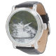 Uhr, Vintage Männeruhr mit schwarzem Lederarmband