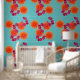 Abziehen und kleben Tapete blau orange-rosa Blumentapete. Die Innenarchitekten der Mieter können jedes Zimmer personalisiert aussehen.