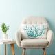 Dieses Akzent Kissen ist in Weiß mit einem niedlichen Muschel- und Korallenprint in Blau und Grün dargestellt. Passen Sie dieses Objekt an oder kaufen Sie, wie es ist. Börsenbild all-free-download.com
