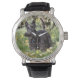 Uhr, Vintage Männeruhr mit schwarzem Lederarmband