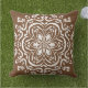 Dieses weiße Mandala sitzt auf einem dunkelbraunen Hintergrund. Die Farben sind natürlich und komfortabel. Teil der Losonieth Mandala Kollektion.