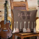 Das perfekte rustikale braune Design für den coolen Rockstar in Ihrem Leben, indem Sie einfach einen Namen und Monogramm Initial hinzufügen. Drei handgezeichnete semiakustische, elektrische Gitarrenabbildungen in durchscheinend weißer, hellbrauner und dunkelbrauner Farbwiedergabe auf brauner Hintergrundfarbe in der Innenstadt. Ideal für das Schlafzimmer oder Wohnzimmer, wo kreative musikalische Träume geboren sind. Ideal für Musikliebhaber, besonders Gitarristen. Rustikale Musikinstrumentenkunst von Catherine Sweetman